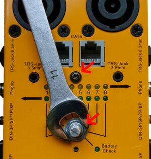 [[File:Thomann_MCT-20_oeffnen.jpg|frameless|200px|Die Rückseite ist mit vier Schrauben befestigt]]
